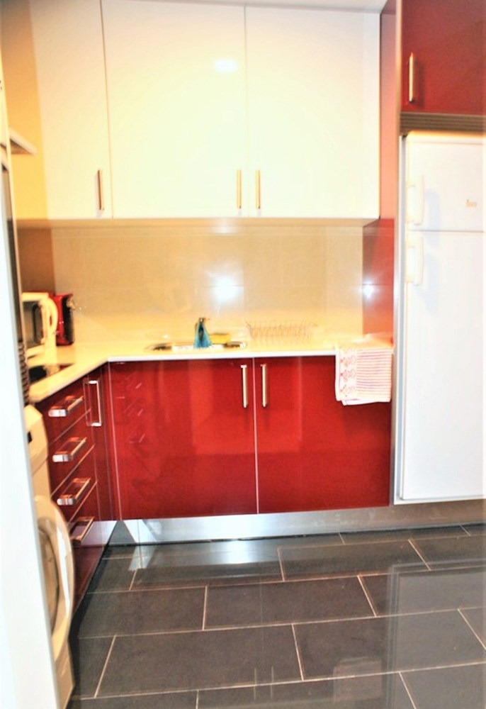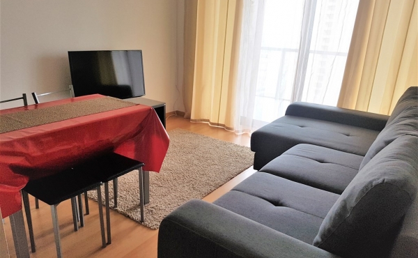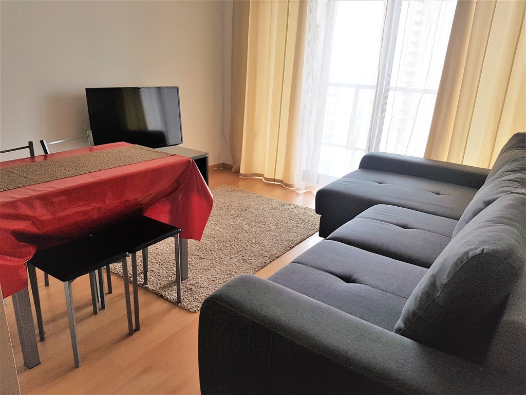 Cozinha totalmente equipada, sala de estar com sofá-cama para duas pessoas, quarto com cama de casal, pequena divisão com sofá-cama para duas pessoas, casa de banho com base de duche com chuveiro, lavatório para 2 pessoas, sanita e bide. O apartamento está no 18º andar com vista para o mar.
