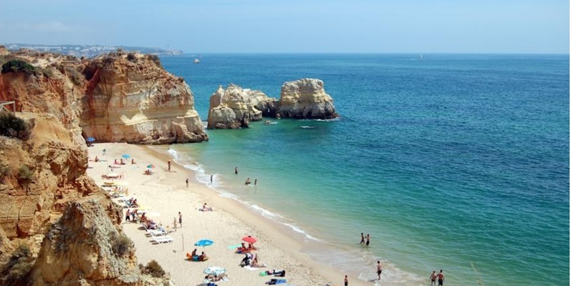 A Praia da Rocha é conhecida internacionalmente e é a cartão da visita da cidade Portimão.
